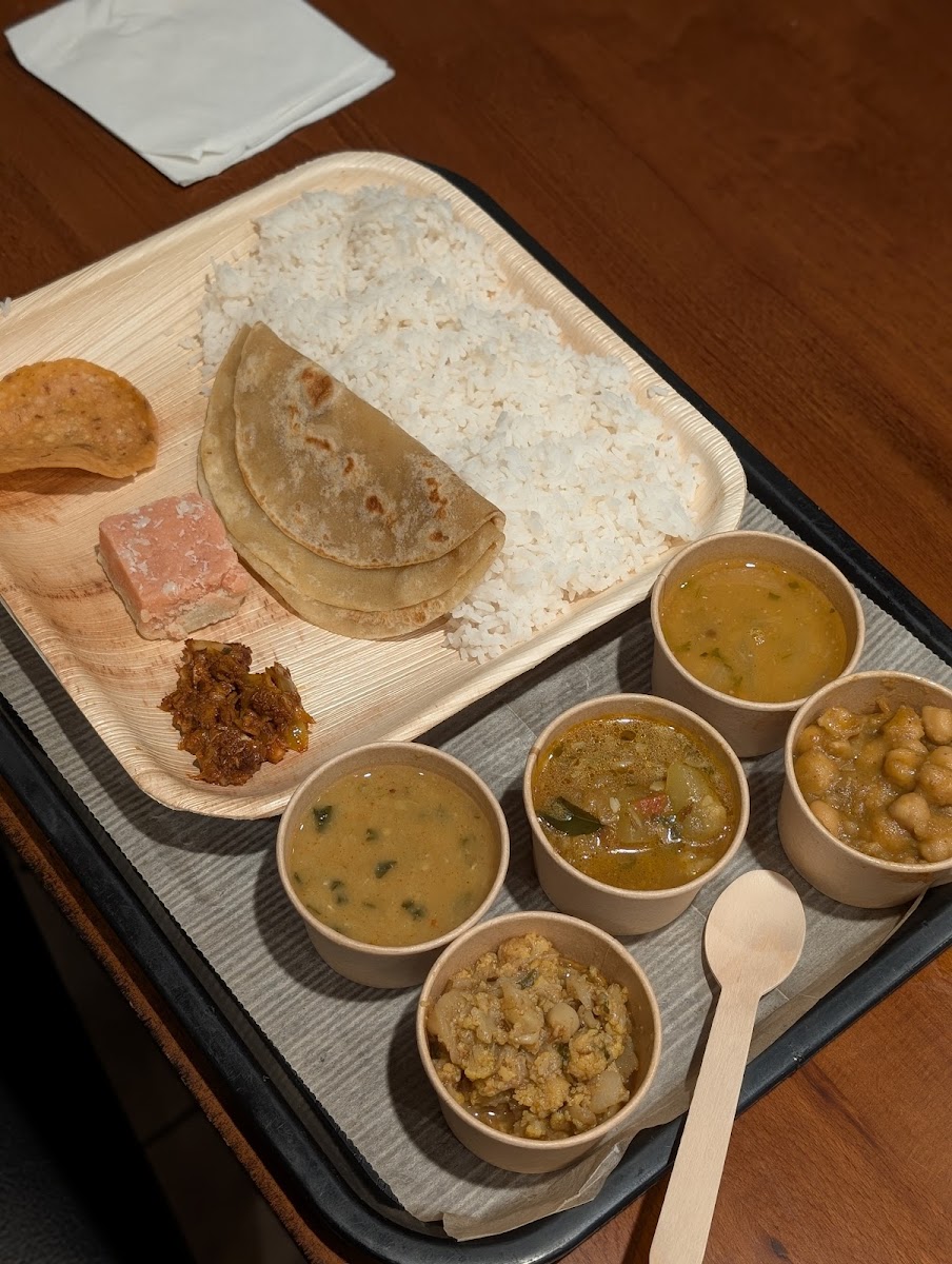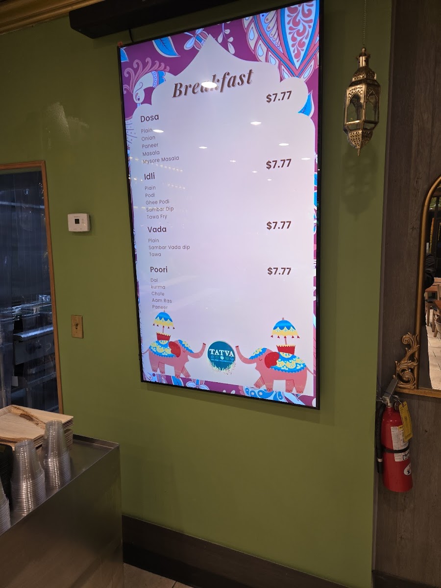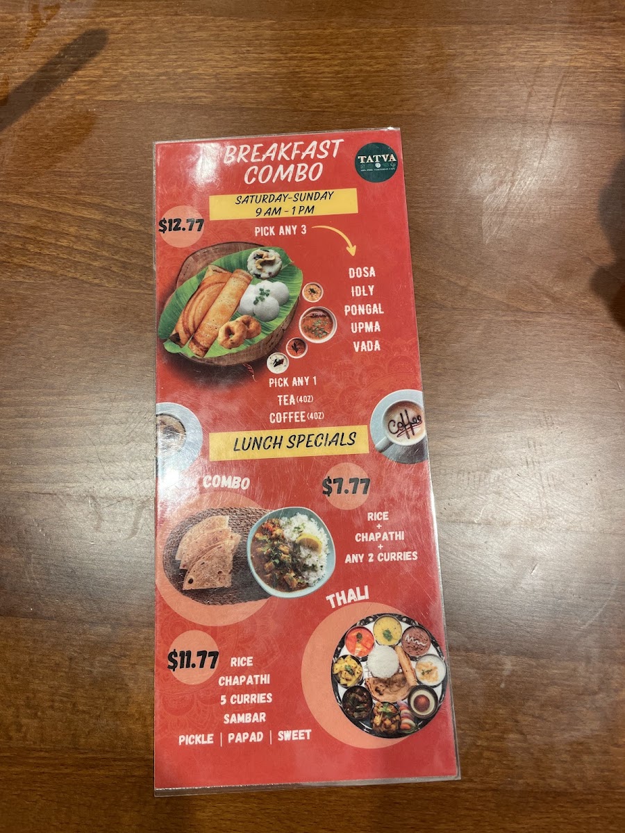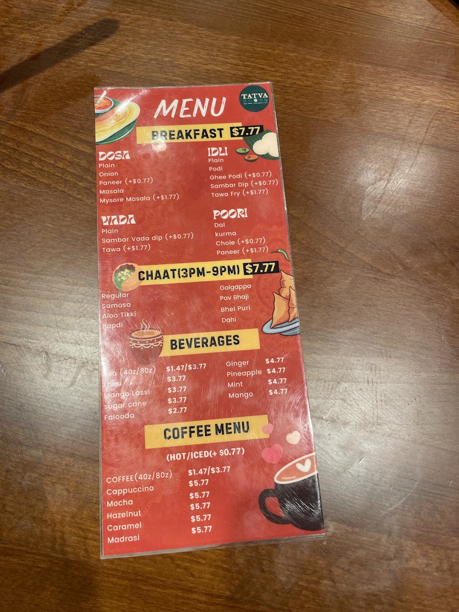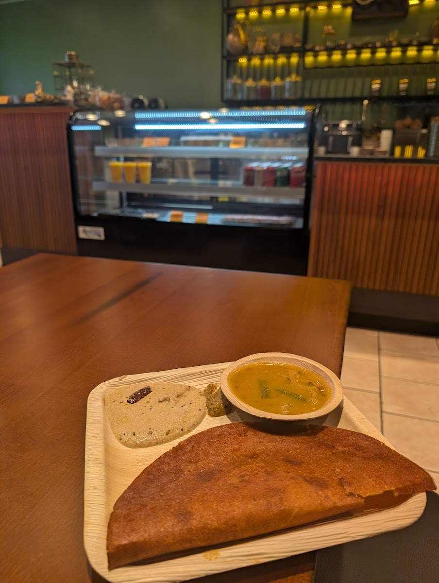 Tatva Cafe shines in its menu offerings, especially in its expertly crafted dosas. A highlight is the Mysore Masala Dosa, a bestseller that boasts a crispy exterior and a tantalizing filling, perfect for your morning cravings. The Paneer Dosa and Plain Dosa are equally enticing, while the Onion Dosa adds a delightful twist, bursting with flavor. For lunch, the Thali is a must-try; it features two breads, rice, four curries, sambar, pickle, papad, and a sweet treat, all packed into a single plate that feels like a home-cooked feast. Customers rave about the curries, with one mentioning the thick daal and chhole as particularly memorable.